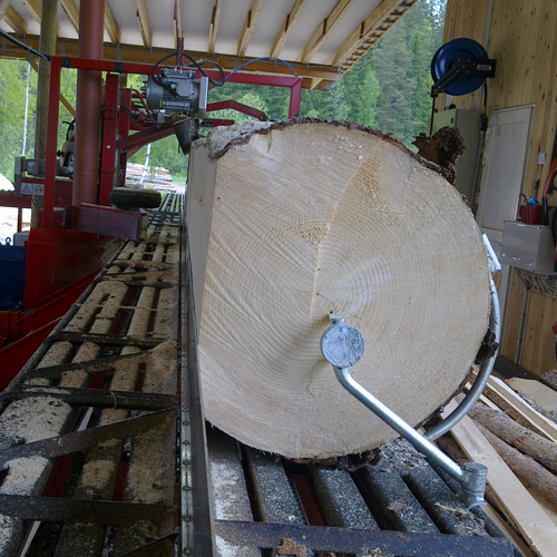 Bearing are specially chosen to ensure the blade has minimal unwanted movement and to ensure a longer bearing life. Decreasing the downtime for a sawmill. The blade is guided by a hydraulic system. The slidetec sawmill can easily cut frozen and very hard wood. This system has its own built-in blade sharpening component, ensuring a quick service to the blade. An automated sizing system can be added optionally. This allows you to specify the size of planks produced by the mill.